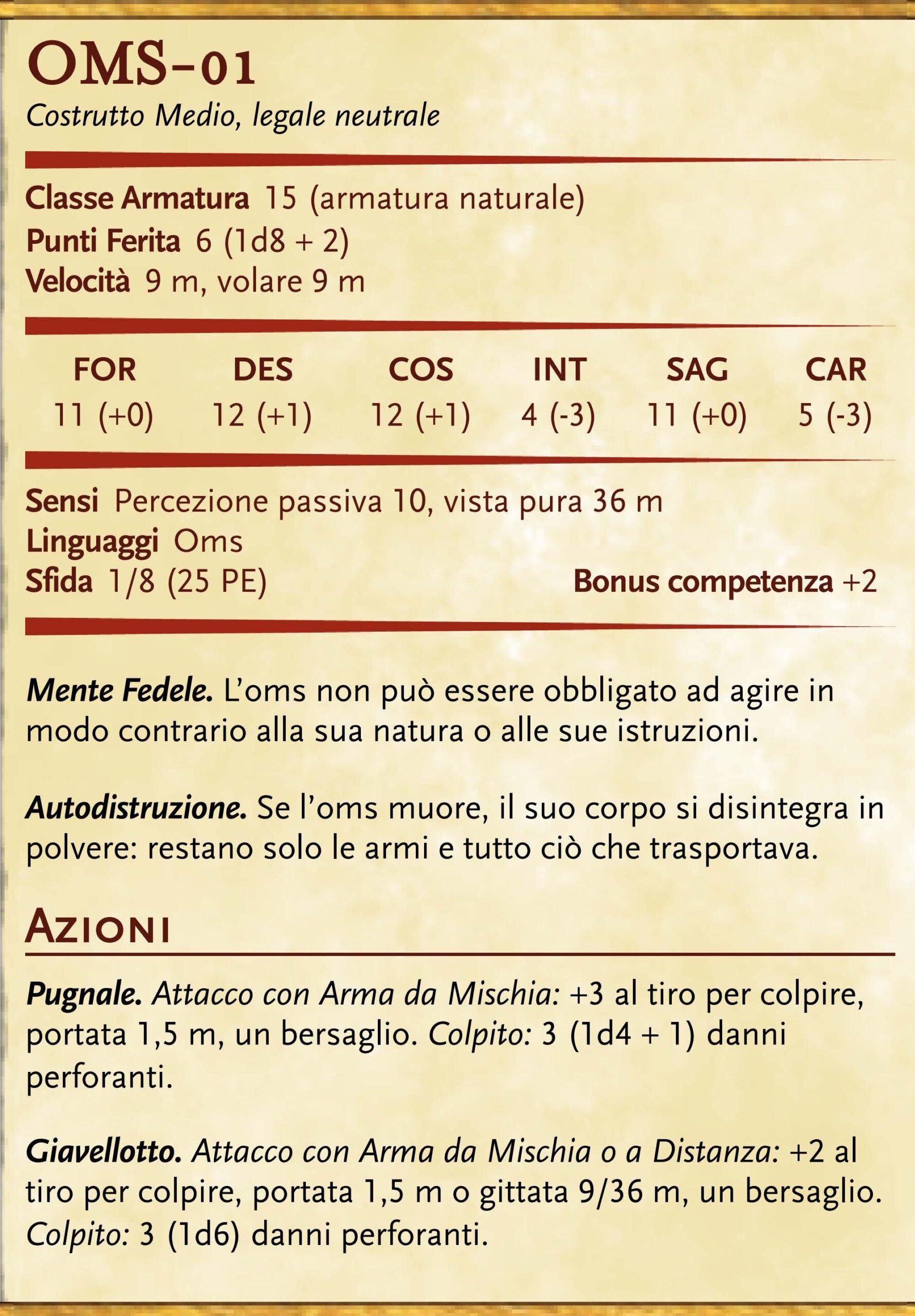 Gli operatori meccanici senzienti sono dei piccoli costrutti realizzati per aiutare il possessore nei compiti più semplici e ordinari. Si pensa che siano stati generati in tempi antichi dagli Oktari che li utilizzavano come bassa manovalanza e per compiti di poco conto, tuttavia dopo anni di schiavitù e vessazioni accade l’impensabile. Viene realizzato un OMS che prenderà il nome di Vlevit e che sarà la chiave della rivolta degli oms contro gli oktari. Questi piccoli costrutti infatti riescono a ribellarsi e fuggire dal controllo degli oktari andando a costituire una prima tribù indipendente.