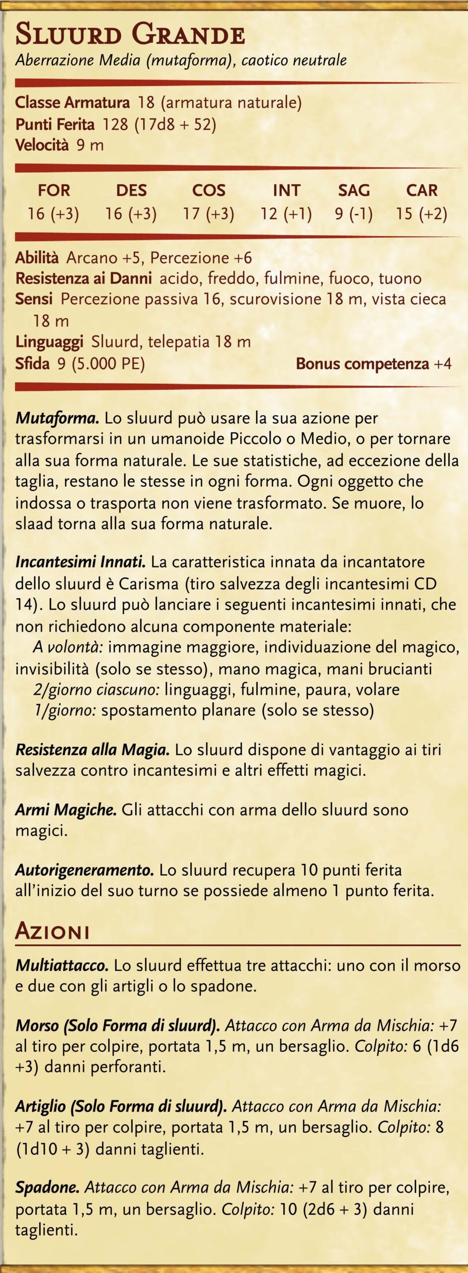 Questo mostro fa parte del compendio personale degli UNONATURALE ed è un mostro creato dallo staff per le nostre campagne